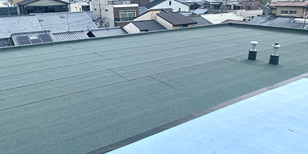 塩化ビニル樹脂製の塩ビシートを使用した防水工事です。