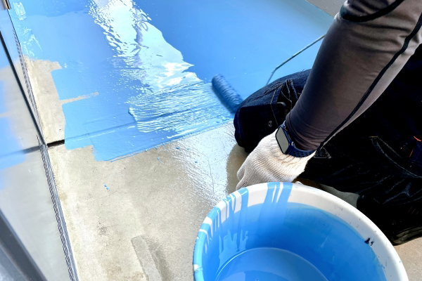 シートの接続部分から水が入ったり、塗料が剥がれたりするのを防ぐため、トップコートを塗って仕上げを行います。